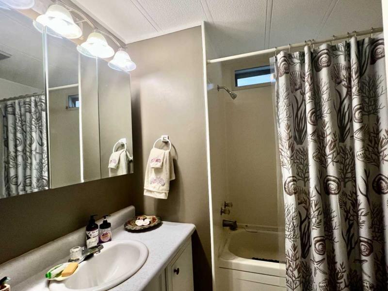 -GUEST BEDROOM/GUEST BATH: The room is a generous size with a full wall closet. The guest bath has a shower/tub combo with easy access from the living areas.