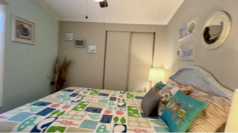 -The guest bedroom has a large reach in closet as well as a full second hallway bath just around the corner. Hallway bath has a shower/tub combo.
