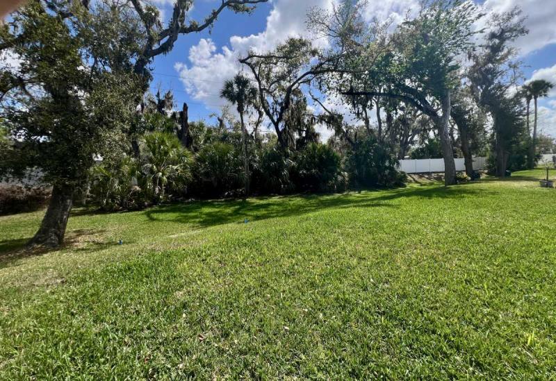 ~FRESH LANDSCAPING: Several Pygmy Palm trees, rock mulching plus a large back yard with Florida trees plus sprinklers