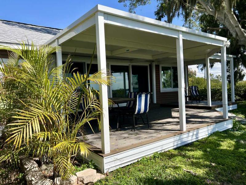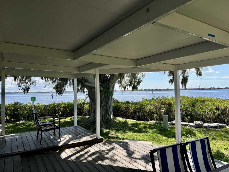 ~COVERED DECKS: Large 13 x 26 multi-level composite wood deck; raised portion is shored up to accommodate hot tub. FULL VIEW down the Manatee River in both directions! Decks covered by heavy duty aluminum frame and insulated roof for wind resistance.