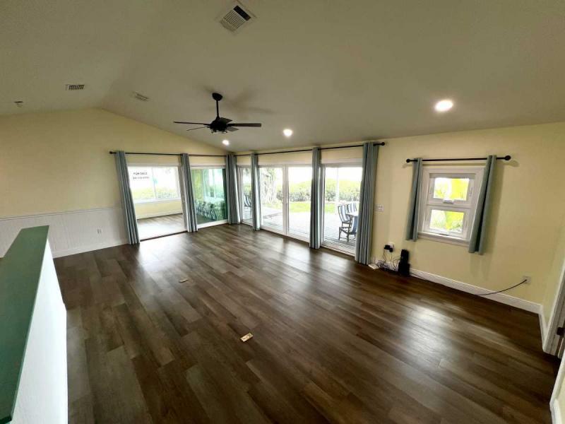 ~GREAT ROOM: 24 X 24; Combines Living room, Dining Room and Kitchen into one enormous space! Kitchen has stainless steel appliances, open bowl SS sink/gooseneck faucet, hard wood butcher block counter tops. The inside laundry is tucked behind folding doors. XL living room has a total of 20 feet of sliding glass doors with full views of the river.
