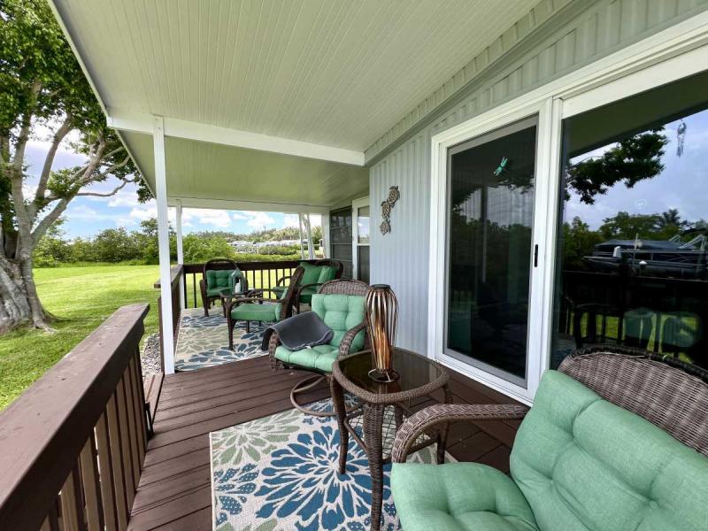 LIVING ROOM/BONUS ROOM: Generous living area; open concept combining kitchen/dining. Sliding glass door out to large wood deck plus another slider to air conditioned Bonus/Florida room; private entrance from deck. The living/dining/Florida rooms have a full view of the waterfront. Florida Room has hard surface windows. This room can flexibly be used as an office, hobby room, extra bedroom, arts/crafts or den.