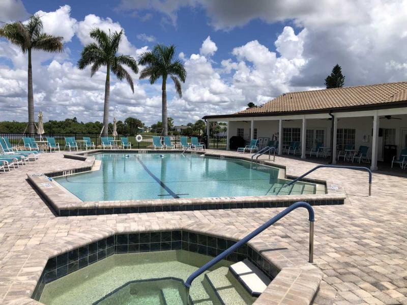 Vizcaya Lakes is a pet-friendly, active community with beautiful grounds and an affordable lot rent of about $900 per month, giving you access to fantastic amenities in a vibrant social setting.