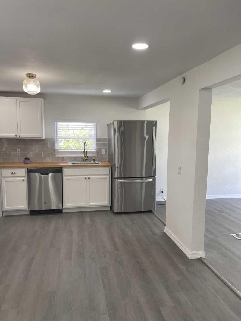 Completely updated in 2024, this home boasts an open-concept layout that seamlessly connects the living room, dining area, and kitchen. You'll love the LVP laminate flooring, modern light fixtures, and sun-filled spaces that make every day feel bright. The kitchen is a showstopper - updated stainless steel appliances, tile backsplash, matching hardware, and plenty of cabinet space make it both stylish and functional.