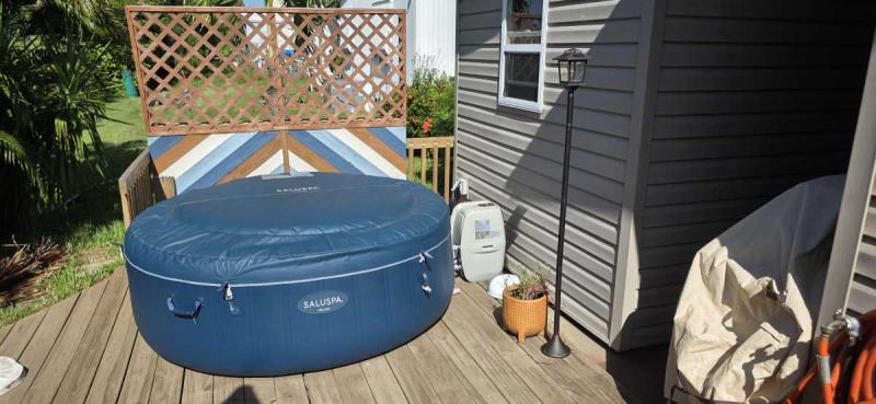 The front of the house has a beautiful porch with a retractable awning for shade. In the back there is a private deck and a new Spa.