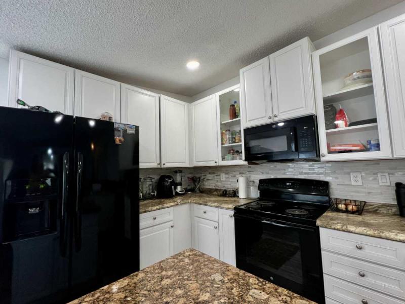 ~REMODELED KITCHEN Newer cabinetry, real granite with some matched faux granite counter tops plus a trendy backsplash