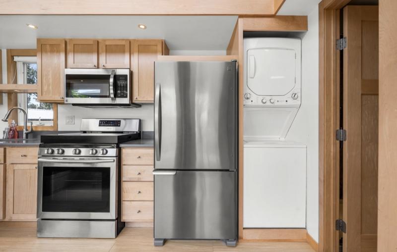 Low-E, thermopane windows, Cedar lap siding w/Corten style metal siding, Panel-Loc Plus metal roofing w/40 yr warranty, Full light entry door, Folding steps with assist handle, Lots of storage ? Aluminum wall pegs, Sealed T&G Pine interior, Wood bathroom door, Upgraded Marmoleum flooring, Energy saving LED lighting, LP RV water heater - 16 gallon ? LP Furnace, Kitchen with maple cabinetry, stainless appliances including 30" gas range, venting M/W and 24" refrigerator, deep stainless sink and designer faucet, Butcher block kitchen table, Bathroom features: Vanity with single bowl sink, chrome faucet, one piece 30 x 60 fiberglass tub/shower, Toto toilet, low sohn exhaust fan, large mirror, LED lighting, hardware & opening obscure glass window, Bedroom features queen bed, opening window, large storage cabinet, nightstand, under bed storage, Upstairs loft bedroom or storage attic with opening window & almond railing, ladder (optional 2nd loft), Living area features: LED lighting, storage, opening windows, steel floor joists, steel rodent resistant underbelly, ¾" T&G floor sheathing, insulation, radial tires, safety hitch and leveling jacks, DOT lighting ? 2x4 Exterior wall framing, 16" OC, Baseboard heat, ½" wall & roof sheathing, Vaulted ceiling, EcoRoll, GREENGUARD Gold certified insulation, 30 amp plug + Std. RV hook-ups, Plumbing: Pex Manifold System, Smoke/CO detector and fire extinguisher, U/L approved devices and wiring, Ceiling fan in living area, USB outlet, 2-20 gallon LP tank system with cover.