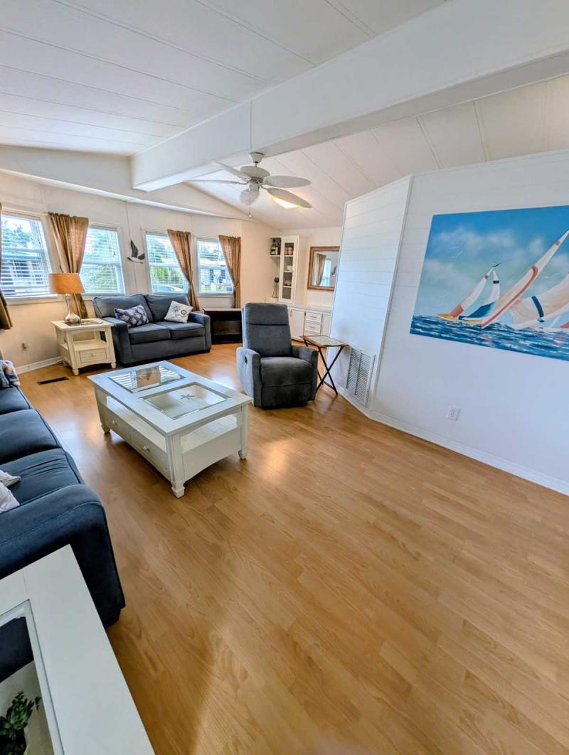 This charming, spacious mobile home is a beautiful place to call home or a coastal retreat.