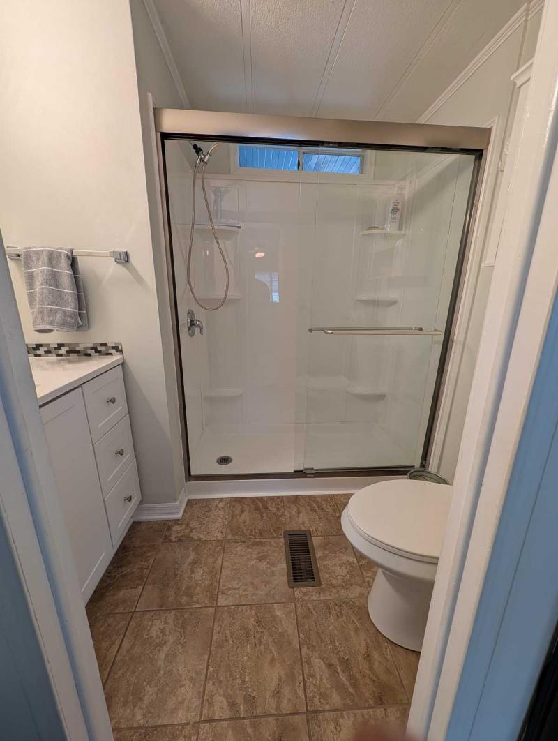 This is a mobile home for sale in a lot lease community.