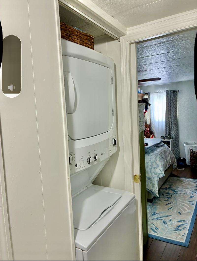 The updated bathroom includes a new luxury toilet, and the convenience of a stackable washer and dryer located inside adds everyday ease.