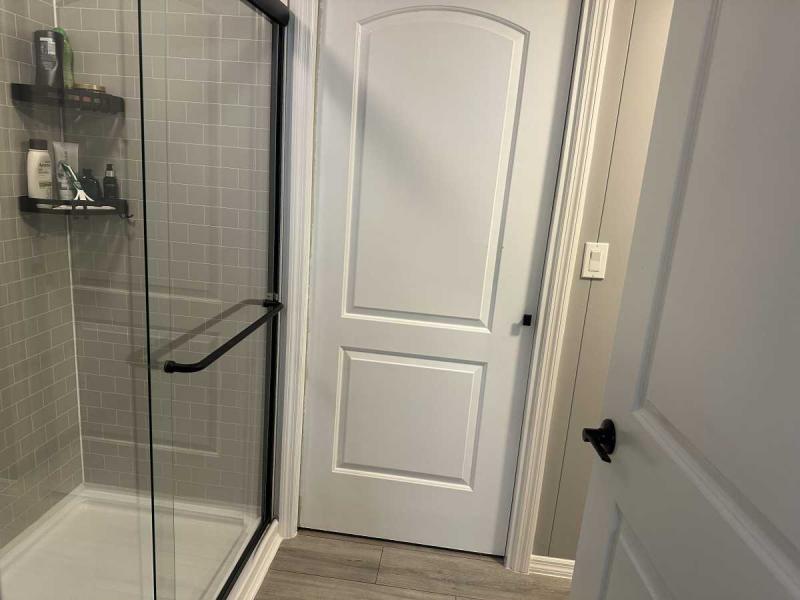 The master bedroom is large enough for a king bed, ceiling fan and has an ensuite. The beautiful bathroom has a walk-in closet and regular closet. The bathroom has a double sink vanity with quartz counter top and a beautiful spacious walk-in shower.