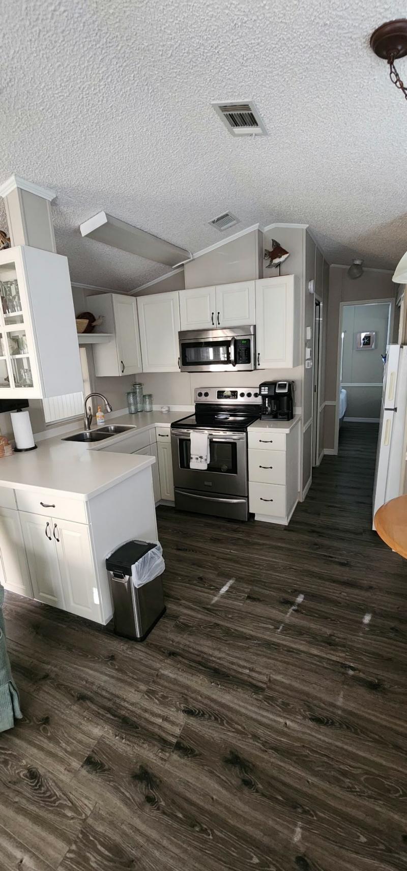This turn key move in ready 1BR/1BA was meticulously remodeled. Newer stainless steel kitchen appliances. The open floor plan is spacious and bright with vaulted ceilings and luxury vinyl flooring. The A/C and TPO membrane roof was installed in 2021! Included in the sale is the washer and dryer, microwave and more!