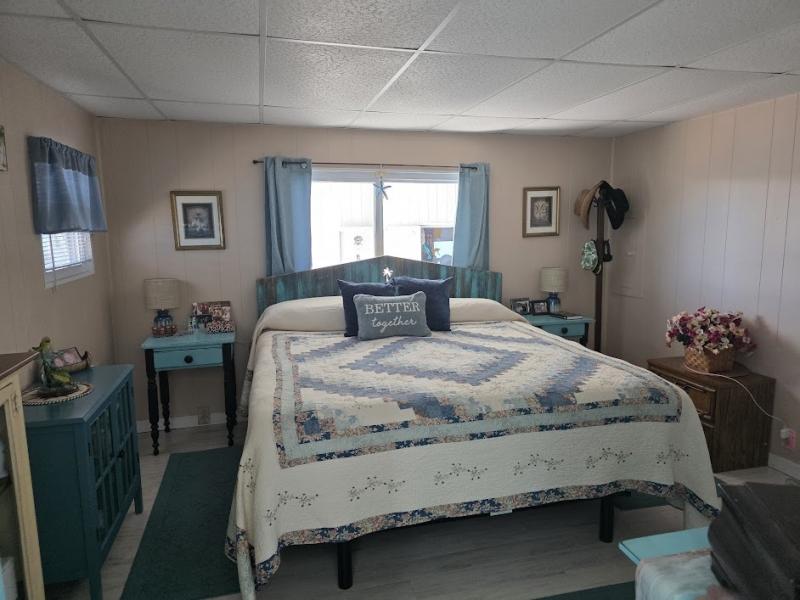 This home features a spacious king-size owner's suite with a private bath, walk-in closet, and separate shower/toilet area. A fully enclosed front room with thermal windows offers flexible space for an office, guest room, or cozy den.